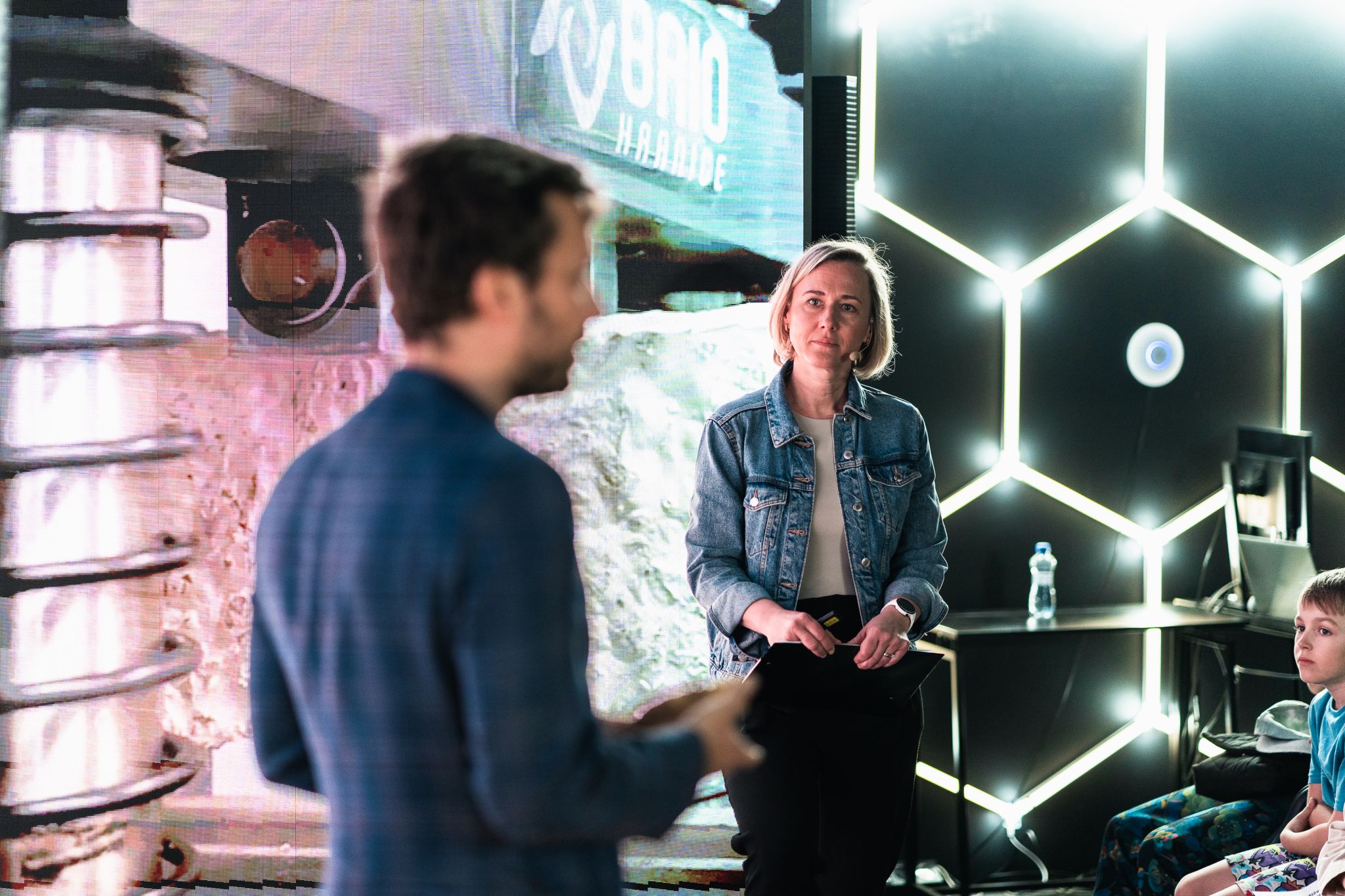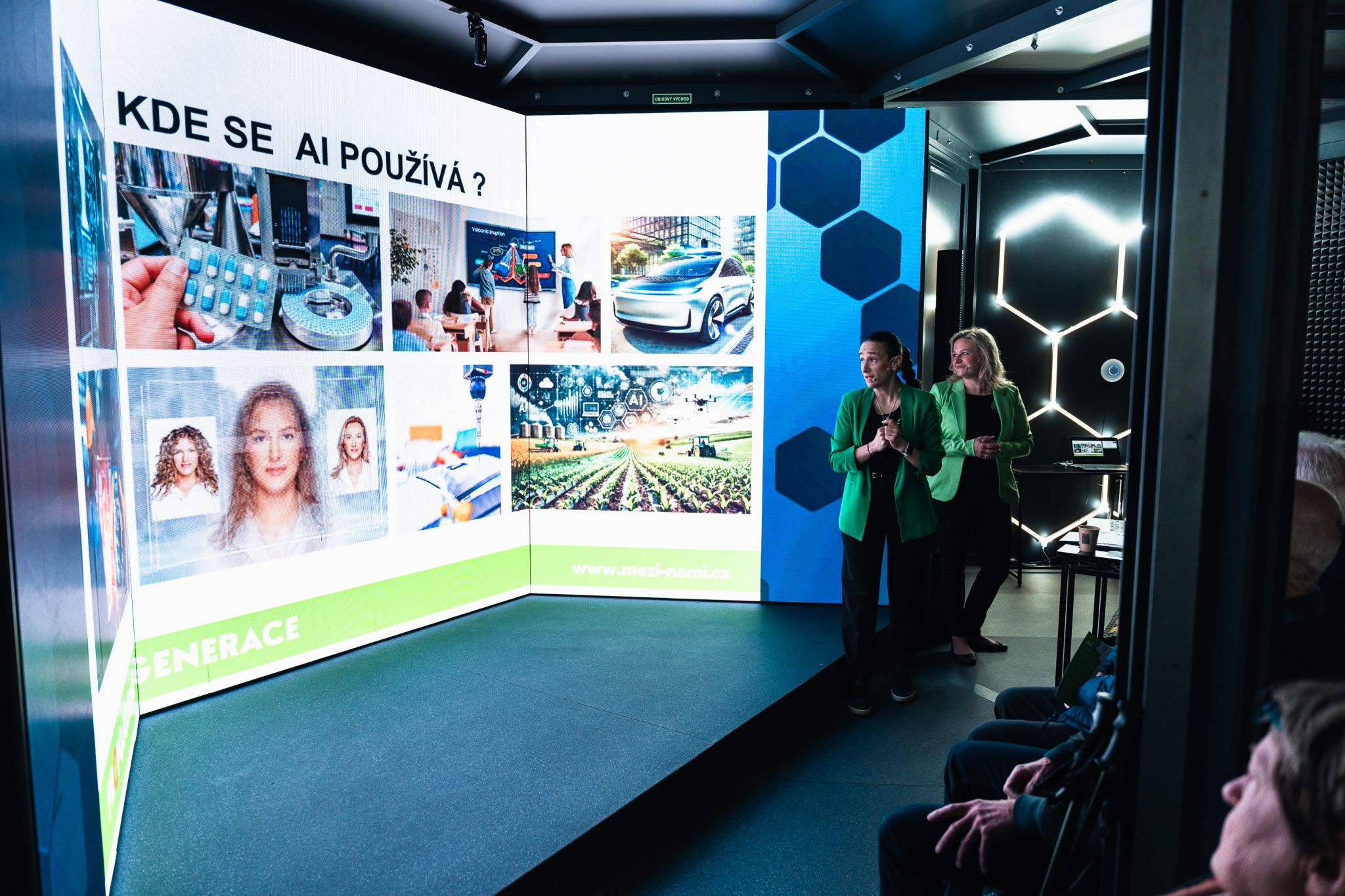 Komunitní Hub: Pavilon fungoval jako auditorium pro debaty např. s astronautem Alešem Svobodou i jako moderní učebna pro testování vzdělávací platformy Skoala.